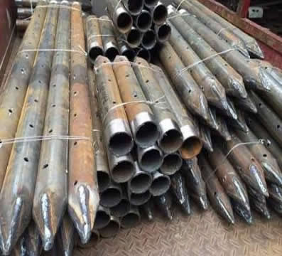 硬质塑料或硬质橡胶骨架注浆管的管体上均匀设有4排出浆孔,管凹槽处覆以起单向开关作用的发泡条,外层由尼龙织网包裹而成。